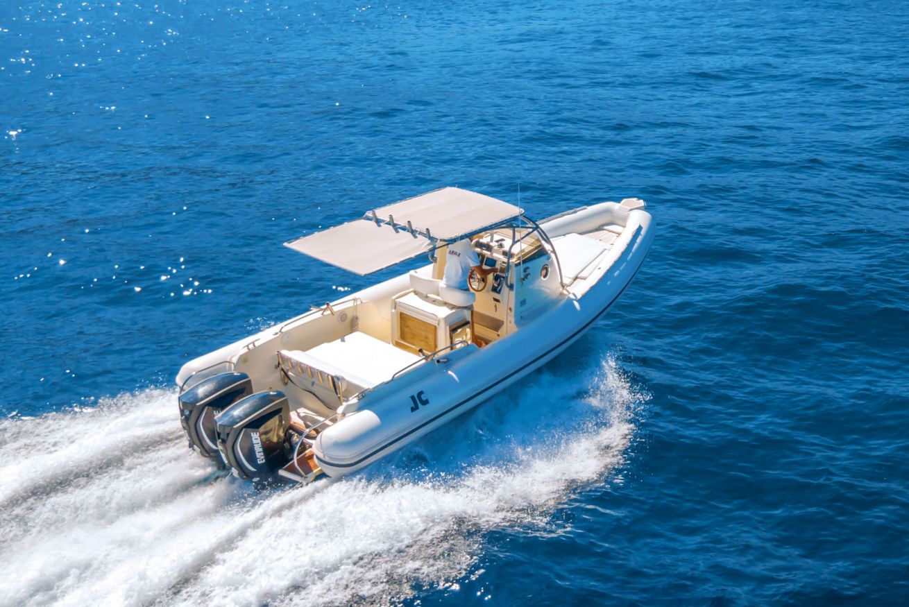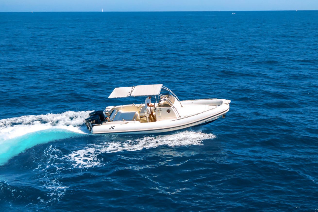 Stupendo gommone motorizzato con due motori da 250 cavalli. La barca è dotato di bellissimi prendisoli sia a poppa che a prua, Doccetta, Stereo. Punto importante è dato anche dalla piccola cucina a bordo e dal capiente frigo, ottimo per la traversata.