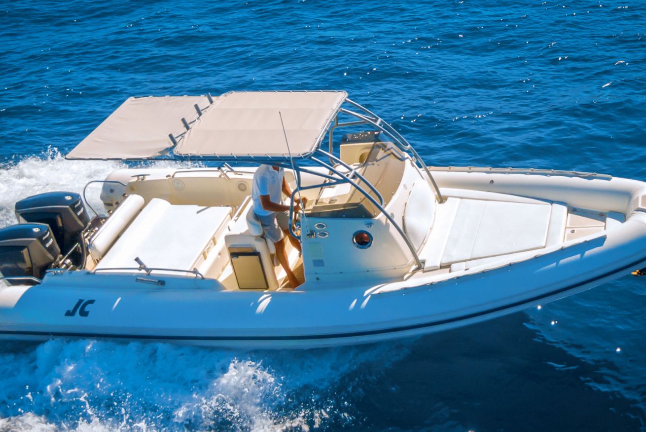 Stupendo gommone motorizzato con due motori da 225 cavalli. La barca è dotato di bellissimi prendisoli sia a poppa che a prua, Doccetta, Stereo. Punto importante è dato anche dalla piccola cucina a bordo e dal capiente frigo, ottimo per la traversata.